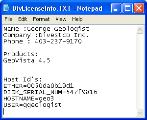 Divestco Support will send you a license file for your current GeoVista purchase level. Save this file in the top level of the GeoVista install folder on your PC. The next time you start GeoVista, the license will load and allow you access to the GeoVista databases.