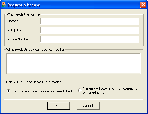 Once your information is entered, you may use the default setting which sends your information in an e-mail to Divestco Support. Or you can select the Manual check box which creates a Notepad .txt file with your information. You could then print and fax this very short document to Divestco.