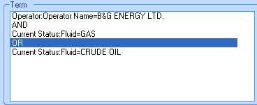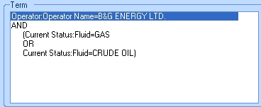 In the following search, you get a result list with all of B&G’s wells that have gas, and all wells (regardless of owner) that have crude oil.