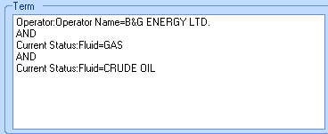 In the following search, you get a result list of all of B&G’s wells that contain either gas or crude oil.