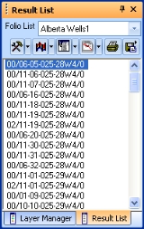 Use this tab to work with result lists. For every successful search, GeoVista creates a result list that contains all the folios that fit the criteria.