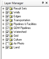 Right-click on a layer name to open the following shortcut menu: