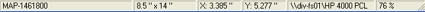 The Status bar dynamically shows your coordinates as you move your cursor around on the map. As well, this bar shows you the name of your current map, the current paper size, the selected printer, and the current map zoom.