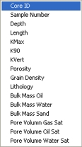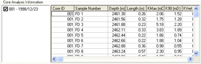 associated with the selected well. Each core analysis report number is