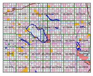 You can configure your map to display township and section labels once you zoom to a certain level. To open the Township & Section Label Options dialog box, select Map | Manage Township Labels from the Main Menu bar.